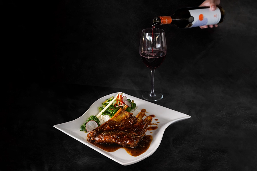 Tender slow-cooked pork ribs glazed with rich Indonesian spices, served with pandan rice, sambal matah, and crisp pickles. Thoughtfully paired with a glass of Hatten Aga Red for a comforting yet refined island-inspired experience.